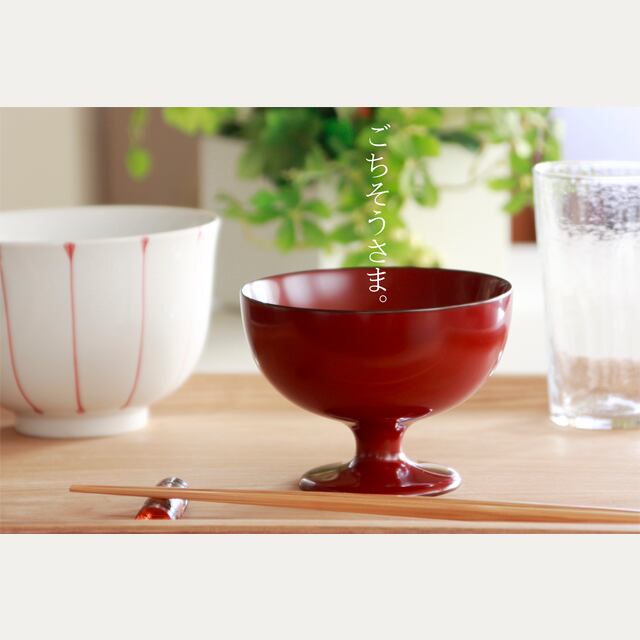 「手のひら椀」の最大の特徴は脚があるためお椀の部分が浮いた状態になっていることです。そのため脚部に手を差し入れるだけで簡単にお椀を持ち上げることができます。置く時も手をスッと抜くだけで完了です。「手のひら椀」は健常者の方はもちろんのこと高齢者や障害者の方にも優しいお椀です。